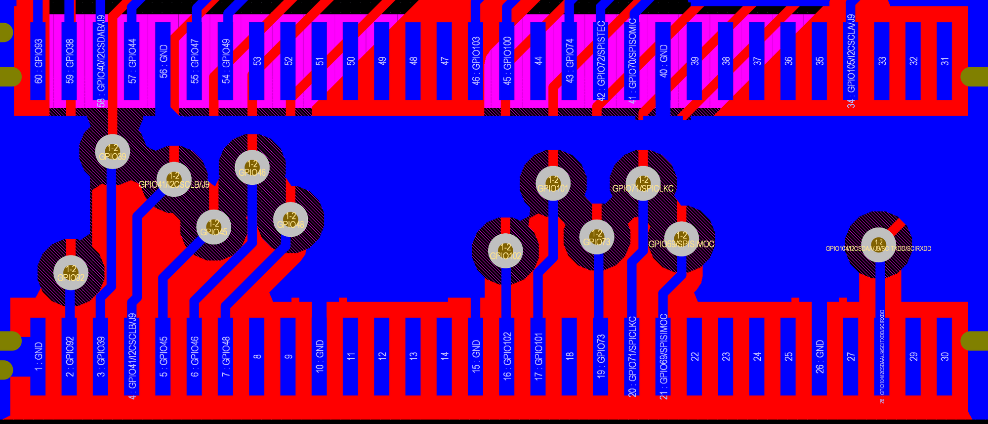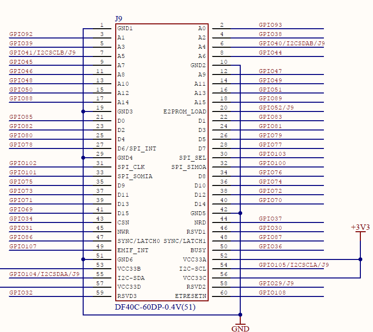 The design follows the schematic pin configuration. Hence some connections will be assign to GND or 3.3V resulting it unusable